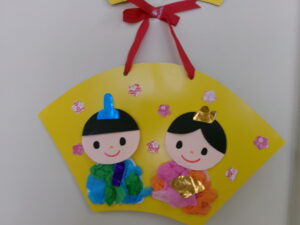 おだいりさまやおひなさまのお顔を描いたり、好きな色のフラワーペーパーを丸めてペタッペタッと貼ったりして楽しそうに作っておられました✨とっても可愛いおひなさまが出来上がり🎎みんな嬉しそうで にこにこの笑顔が見られました😊